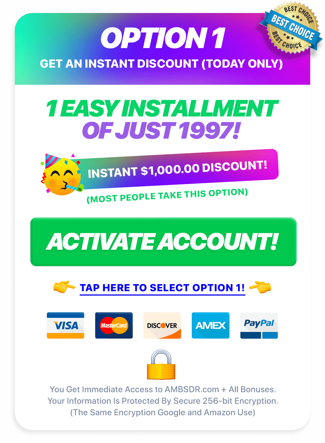 OR... YOU CAN SAVE $1,000.00 NOW if you would like to just take care of everything all at once for 1 Easy Installment of JUST 1997! 🥳